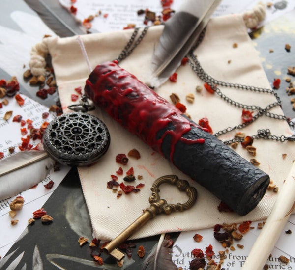- De sojawaskaars is verkrijgbaar in de kleur Zwart/rood, perfect passend bij de symboliek van Hekate.