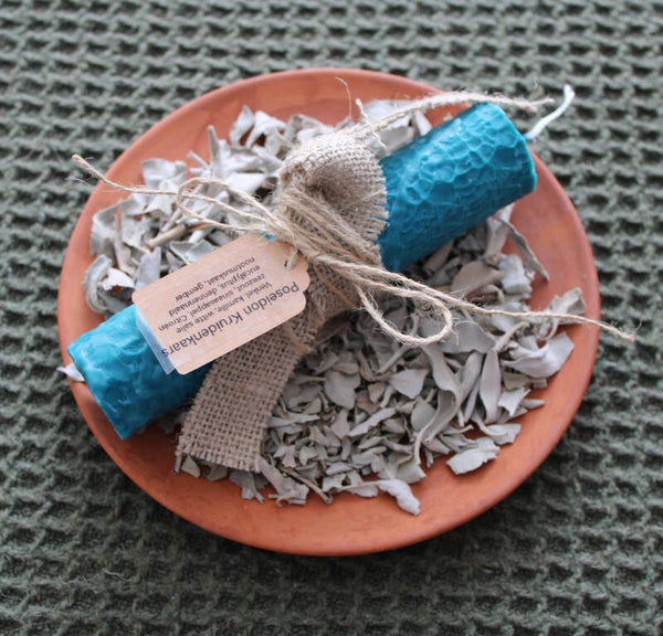 Stap in de mystieke uitstraling van Poseidon (Neptunus) energie met deze prachtig handgemaakte rituele Poseidon (god van de zee en aardbevingen) kruidenkaars