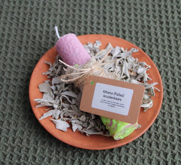 - Athana Pallas (Minerva) kruidenkaars is gemengd met essentiële oliën. Lavendel, Paarse Salie, Doornen, Bijvoet.