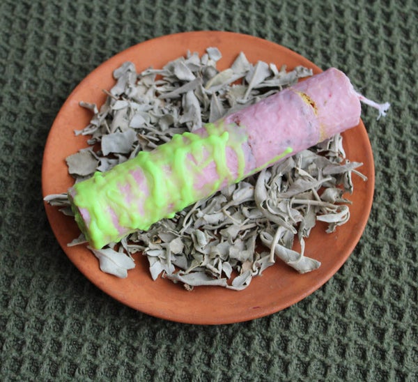 Let op: dit is geen gewone kaars! De bloemen en kruiden in de kaars zijn ontworpen om mee te verbranden.