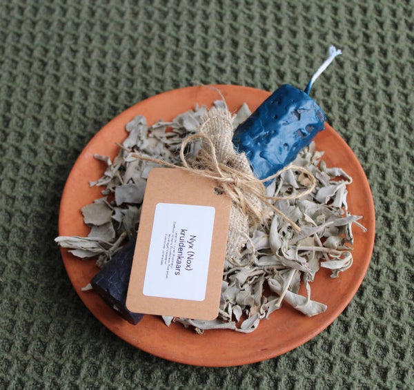 - Nyx (Nox) kruidenkaars is gemengd met essentiële oliën Lavendel, Paarse Salie, Doornen, Bijvoet. Roos, Bergamot, Rozemarijn, Den