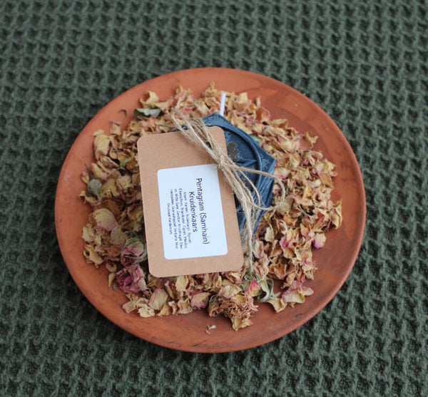 Elke handgemaakte kruidenkaars is uniek en draagt pure energie in zich. Kleine imperfecties, zoals een robuuste of ruwe afwerking, maken deel uit van haar natuurlijke charme. De kaars bestaat uit een harmonieuze mix van 50% kruiden en 50% sojawax.