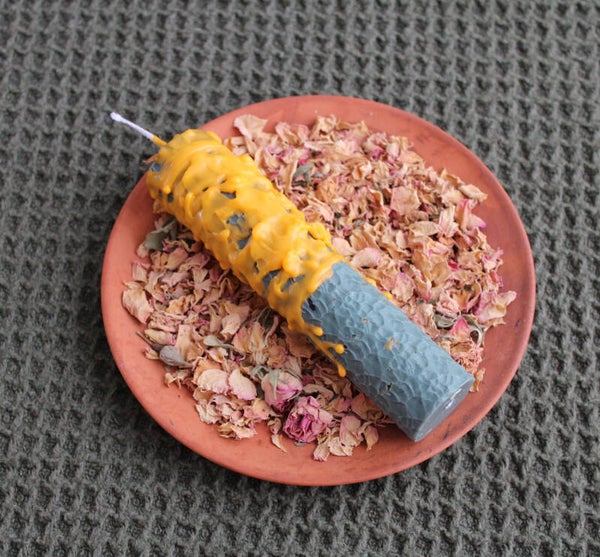 Let op: dit is geen gewone kaars! De bloemen en kruiden in de kaars zijn ontworpen om mee te verbranden.