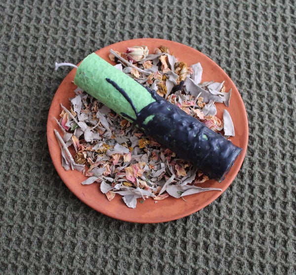 Let op: dit is geen gewone kaars! De bloemen en kruiden in de kaars zijn ontworpen om mee te verbranden.