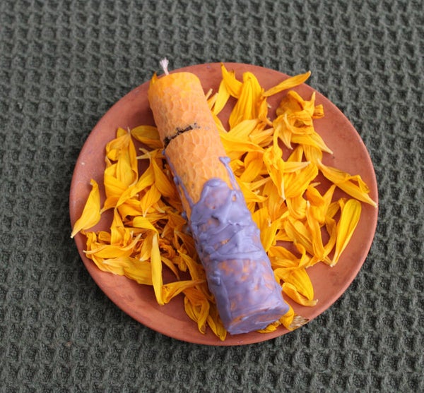 Let op: dit is geen gewone kaars! De bloemen en kruiden in de kaars zijn ontworpen om mee te verbranden.