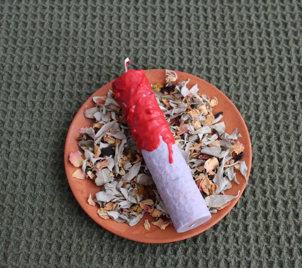 Let op: dit is geen gewone kaars! De bloemen en kruiden in de kaars zijn ontworpen om mee te verbranden.
