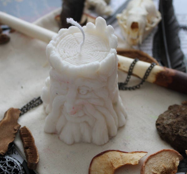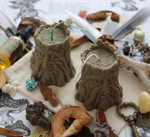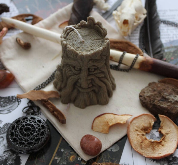 Altaarkaars in de vorm van een boomstam met het gezicht van de Groene Man. Deze unieke en magische kaars is een betoverende toevoeging die jouw rituelen als heks versterkt en meer diepgang geeft. Perfect voor ceremonies en magisch werk met de Groene Man of de Gehoornde God Cernunnos. Daarnaast is het een prachtig symbool voor de natuur, de wedergeboorte van de lente en de vruchtbaarheid van de aarde. Een ideale keuze voor rituelen die een goede oogst vieren.