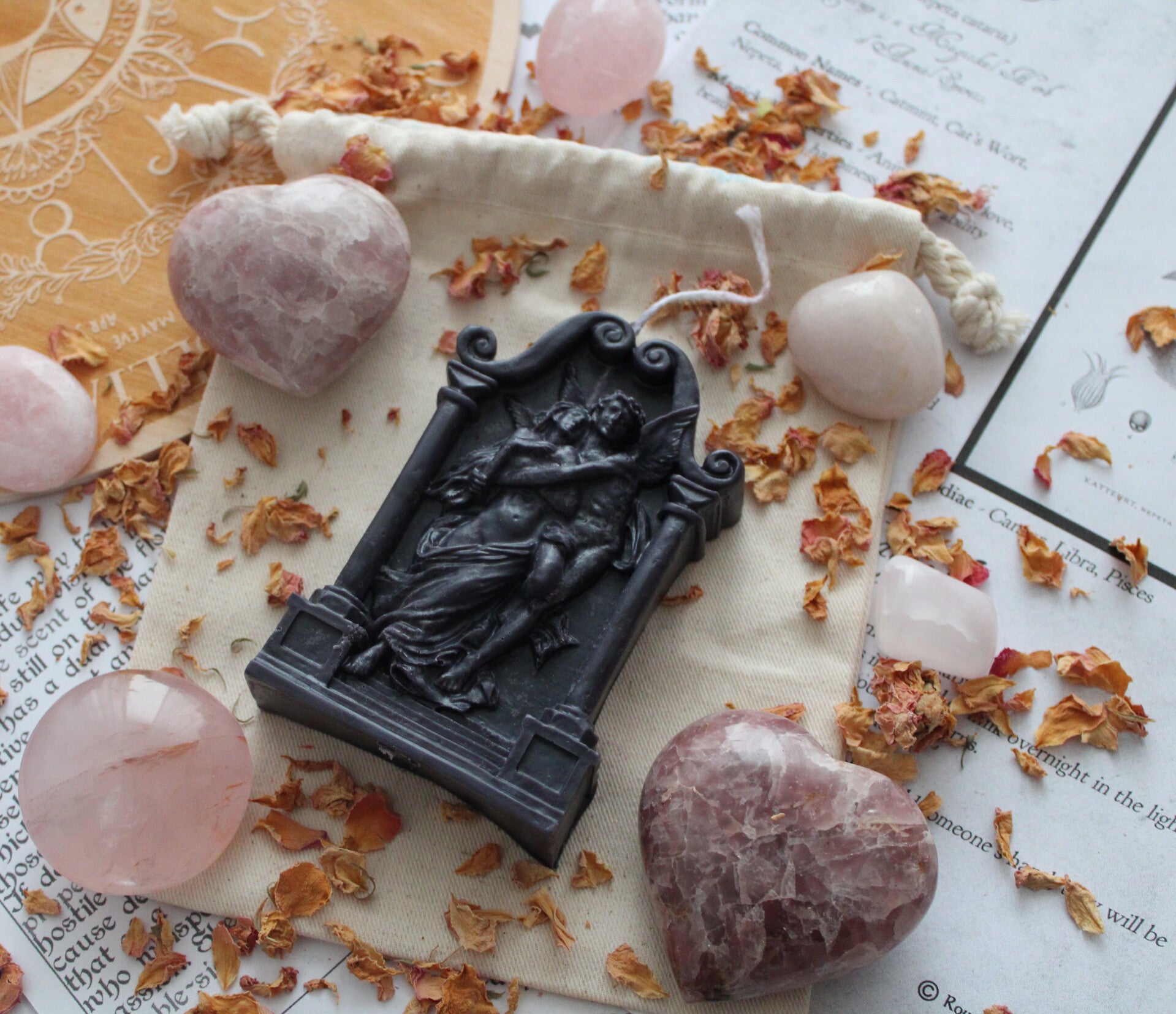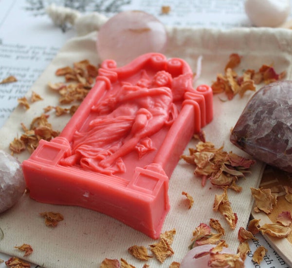 Ze ging er naar binnen en haar verbazing werd bij alles wat ze tegenkwam groter: Gouden pilaren ondersteunden het dak van ivoor en cederhout en de muren waren er prachtig beschilderd. Terwijl Psyche vol bewondering rondkeek, sprak een stem tegen haar: “Onovertroffen vrouwe, alles wat u ziet is van u. De stemmen die u hoort zijn uw bedienden. Ze zullen alles doen wat u hen opdraagt. Ga nu naar uw kamer en fris u op voor het eten.”